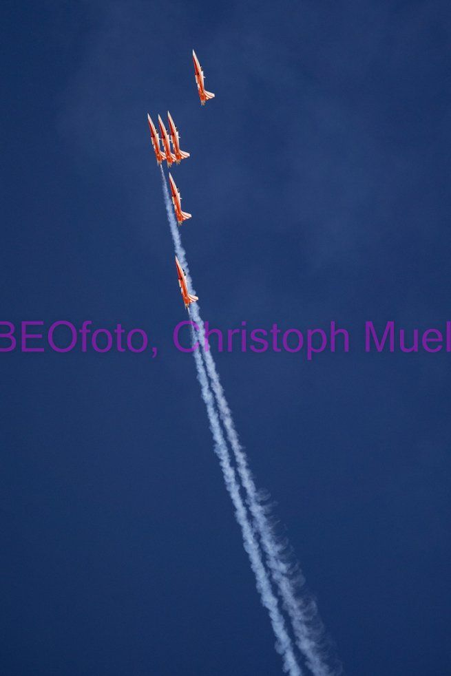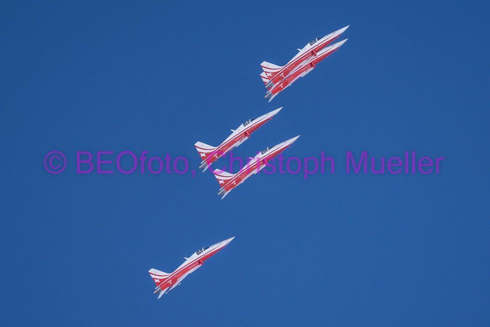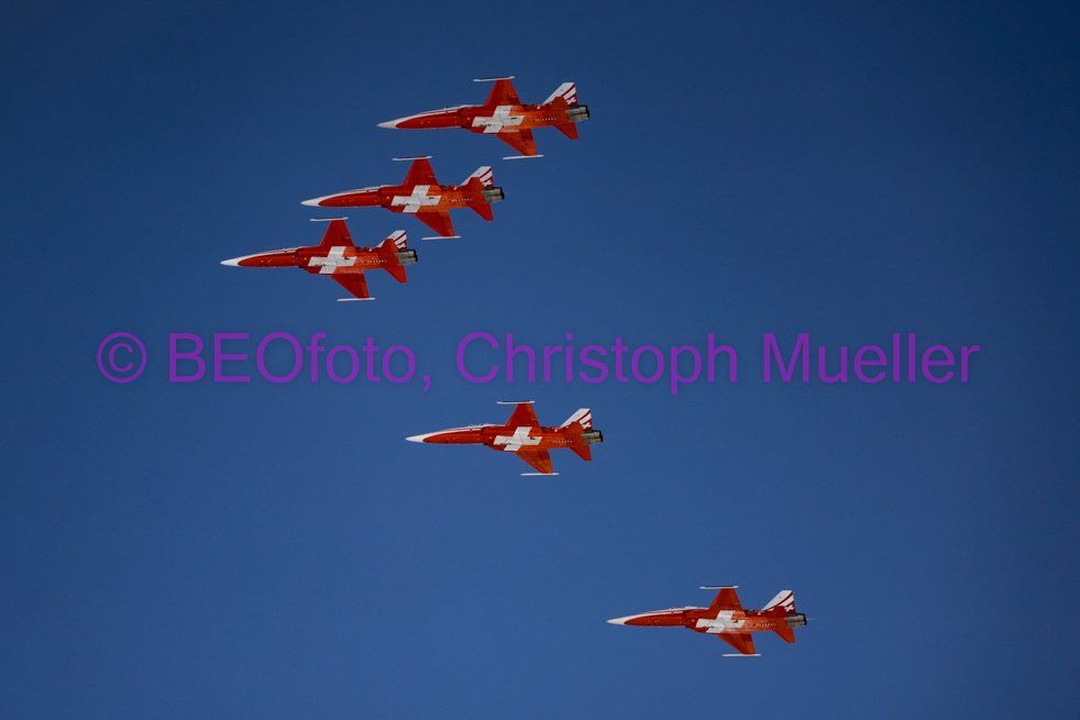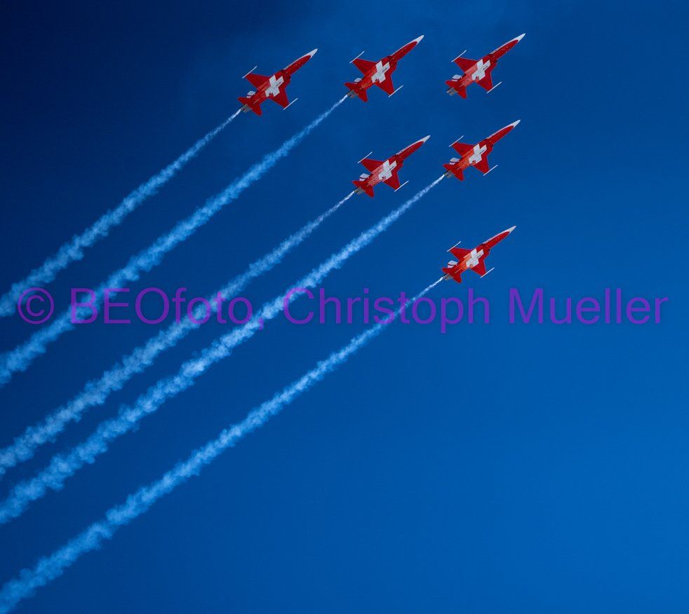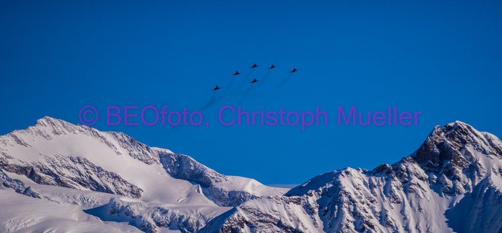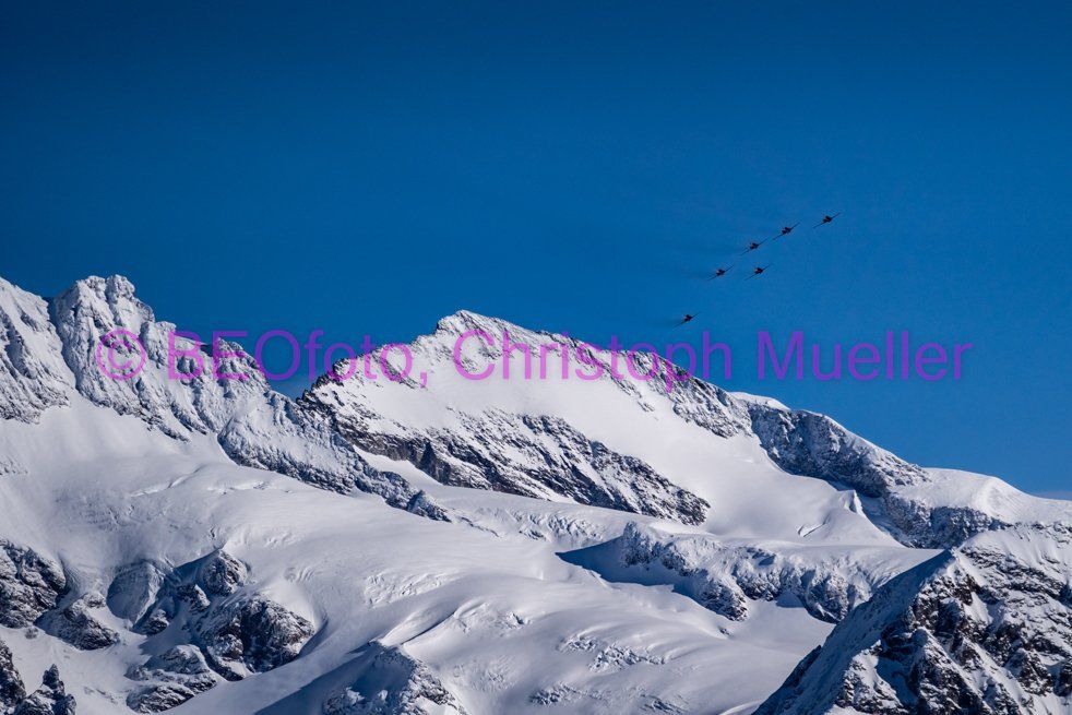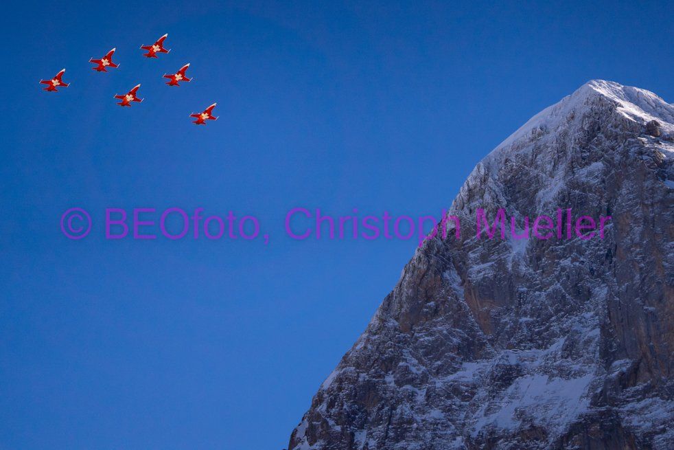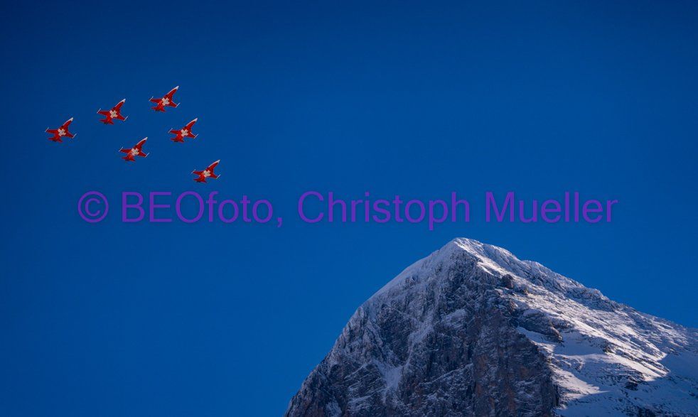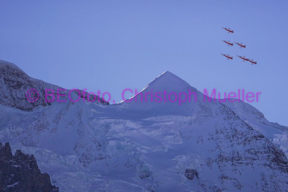 A show by the Swiss flight squadron Patrouille Suisse is traditionally part of the supporting program, ie you have the chance to photograph the bright red F / A-18 with the panorama of the Eiger, Mönch and Jungfrau.